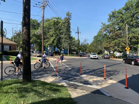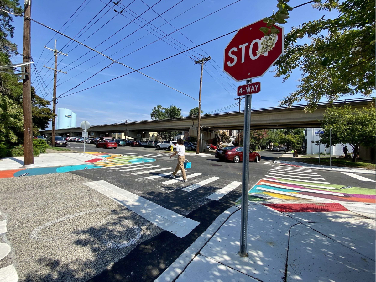 In September 2025, the Borough opened a new Pocket Park in downtown Collingswood, revitalizing an underutilized parking lot with movable furniture, native habitat gardens, and stormwater management improvements (Borough of Collingswood, 2025b). This follows the success of the Borough’s parklet, a seasonal public space established in 2013 that transforms excess street parking at different locations along Haddon Avenue into public seating (Skoufalos, 2013). Both projects followed the principle of experimenting with “lighter, quicker, and cheaper” (LQC) methods. In 2021, after residents voiced concerns about cyclist and pedestrian safety on Atlantic Avenue, the Borough also partnered with the Delaware Valley Regional Planning Commission (DVRPC)’s Experimental Pop-Ups (ExPo) program for the “All Aboard Atlantic Avenue” project (DVRPC, n.d.). This pilot program tested an advisory shoulder bike lane, painted curb extensions, and bollards to improve safety (Connect 2020, 2022; DVRPC, 2021a). Surveys following the project found that nearly 65 percent of respondents wanted the enhanced crosswalks to be made permanent, leading to further Complete Streets pilot projects near the PATCO station in 2022 (Connect 2020, 2022; DVRPC, 2021b).