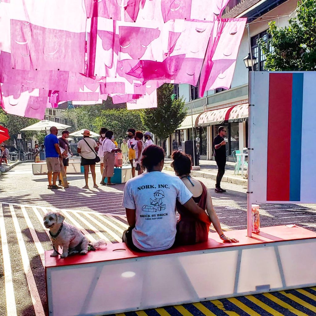 In 2009, the Township renovated South Park Street, located about a half-mile from Bay Street Station. This renovation widened the sidewalks to 25 feet, narrowed the roadway, and added a median and new crosswalks, allowing the street to be closed to vehicles in one direction for pedestrian activity (Arterial Streets, n.d.-a; Lustberg, 2021). This design proved invaluable during the COVID-19 pandemic, when the Township and the BID closed South Park Street and nearby Church Street for outdoor dining and shopping (Baristanet Staff, 2020a; 2020b; Mercer, 2021). Church Street also featured the Pop Goes the Plaza installation, which used artistic shade canopies and modular seating to bring people back downtown. The installation received a 2021 Early Action/Volunteer Organization placemaking award from Downtown New Jersey.